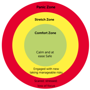 Your Learning or Stretch Zone is the area of novelty, exploration and adventure. Here are the things that are a little or a lot out of the ordinary – the things you haven’t done for a long time or have never done before. This zone is not really a comfortable place – but it is a stimulating one. It is where we stretch and challenge ourselves mentally, emotionally or physically. You need to be in the stretch zone to learn and grow. But you can’t remain in the stretch zone all the time or you’ll burn out.